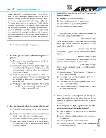 TEST 6 KADER VE KAZA İNANCI VI 8SBDIN-007 1. ÜNİTE