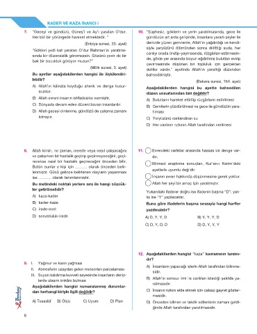 lerde ulaşım imkânı bulması B) Allah’ın sonsuz ilmi ile canlıları istediği şekilde ya-