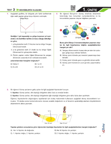 TEST 3 MEVSİMLERİN OLUŞUMU SBFEN-004 1. ÜNİTE