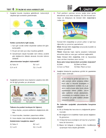 TEST 6 İKLİM VE HAVA HAREKETLERİ SBFEN-007 1. ÜNİTE