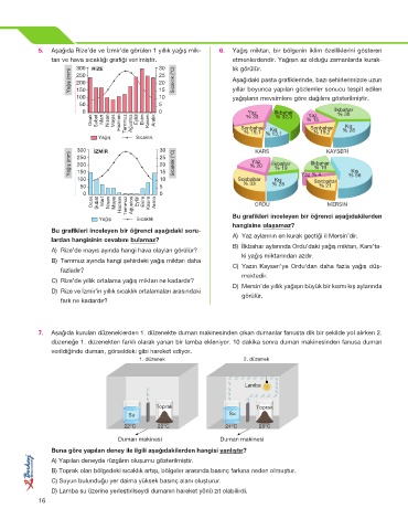 5. Aşağıda Rize’de ve İzmir’de görülen 1 yıllık yağış mik- 6. Yağış miktarı, bir bölgenin iklim özelliklerini gösteren