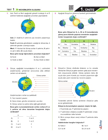 TEST 1 MEVSİMLERİN OLUŞUMU SBFEN-002 1. ÜNİTE