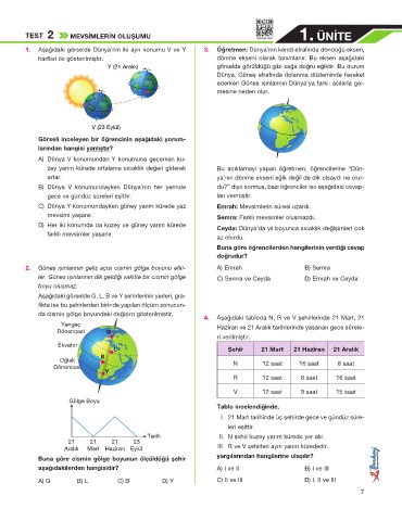 TEST 2 MEVSİMLERİN OLUŞUMU SBFEN-003 1. ÜNİTE