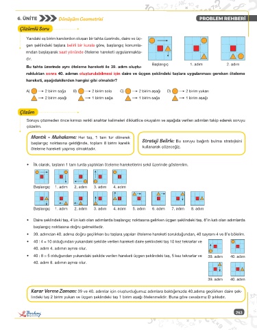 • 40 : 8 = 5 olduğundan yukarıdaki şekilde verilen hareketi üçgen şeklindeki taş, 5 kez tekrarlar ve 39. adım 40. adım