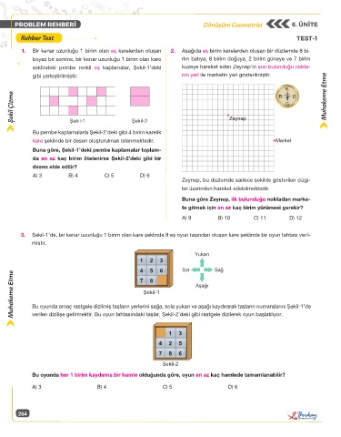 3. Şekil-1’de, bir kenar uzunluğu 1 birim olan kare şeklinde 8 eş oyun taşından oluşan kare şeklinde bir oyun tahtası veril-