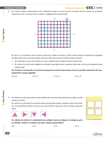 3. Bir robotik kodlama çalışmasında, birim karelerden oluşan bir zemin üzerine koordinat sistemi çizilerek bu koordinat