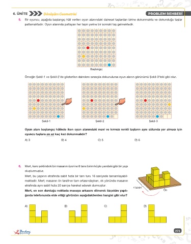 6. Mert, kare şeklindeki bir masanın üzerine 8 tane birim küple yandaki gibi bir yapı