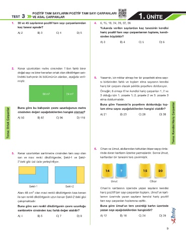 TEST 3 POZİTİF TAM SAYILARIN POZİTİF TAM SAYI ÇARPANLARI SBMAT-004 1. ÜNİTE