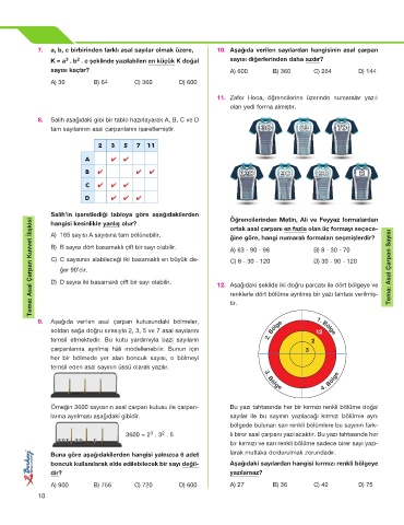 7. a, b, c birbirinden farklı asal sayılar olmak üzere, 10. Aşağıda verilen sayılardan hangisinin asal çarpan