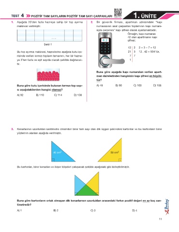 3. Kenarlarının uzunlukları santimetre cinsinden birer tam sayı olan dik üçgen şeklindeki kartonlar ve bu kartonların birer