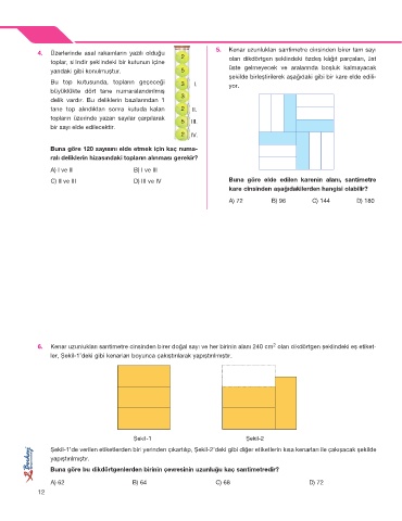 6. Kenar uzunlukları santimetre cinsinden birer doğal sayı ve her birinin alanı 240 cm olan dikdörtgen şeklindeki eş etiket-