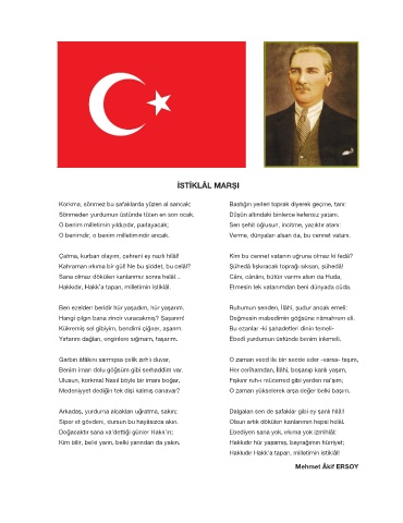 Kim bilir, belki yarın, belki yarından da yakın. Hakkıdır hür yaşamış, bayrağımın hürriyet;