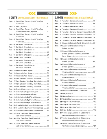 Test - 3: Pozitif Tam Sayıların Pozitif Tam Sayı Test - 4: Tam Kare Sayılar ve Karekök ..................... 73