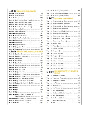 Test - 14: Doğrusal Denklemlerin Grafikleri ............... 183 Test - 4: Dik Prizmalar .............................................. 253