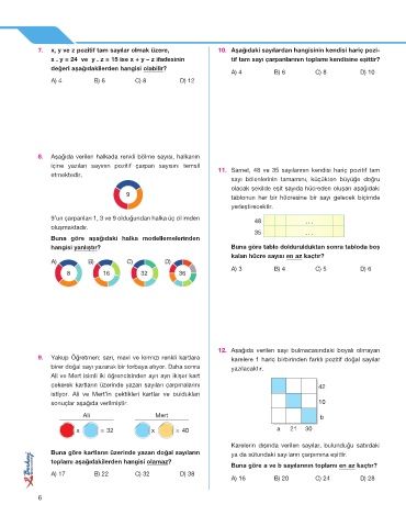 7. x, y ve z pozitif tam sayılar olmak üzere, 10. Aşağıdaki sayılardan hangisinin kendisi hariç pozi-