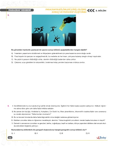 Numaralanmış bölümlerle bir paragraf oluşturulursa hangisi paragrafın sonuç bölümü olur?