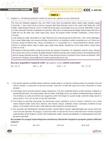1. Aşağıda K, L, M harfleriyle gösterilen metinler; bir yazının giriş, gelişme ve sonuç bölümleridir: