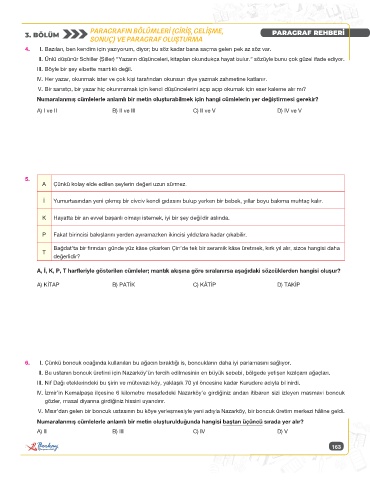 A, İ, K, P, T harfleriyle gösterilen cümleler; mantık akışına göre sıralanırsa aşağıdaki sözcüklerden hangisi oluşur?