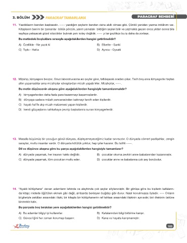 3. BÖLÜM PARAGRAF TAMAMLAMA PARAGRAF REHBERİ