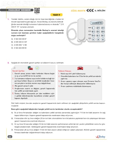 2. Aşağıda bir otomobilin garanti şartları ve kullanım kılavuzu verilmiştir.