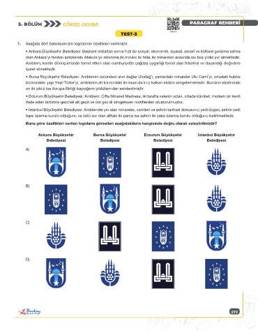 1. Aşağıda dört belediyemizin logolarının özellikleri verilmiştir.
