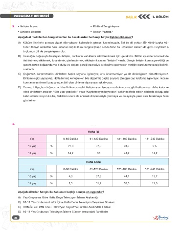 B) 10-11 Yaş Grubunun Hafta İçi ve Hafta Sonu Televizyon Seyretme Süreleri