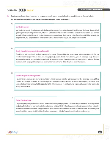 5. Başlık, parçada ele alınan konunun ve vurgulanan düşüncenin (ana düşünce) en kısa biçimde söylenmiş hâlidir.