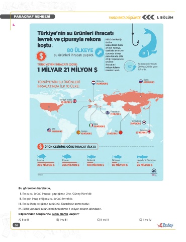 II. En çok ihraç ettiğimiz su ürünü levrektir.