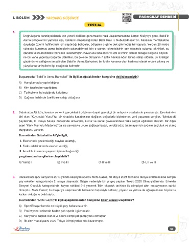 1. BÖLÜM YARDIMCI DÜŞÜNCE PARAGRAF REHBERİ