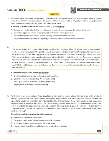 1. BÖLÜM YARDIMCI DÜŞÜNCE PARAGRAF REHBERİ