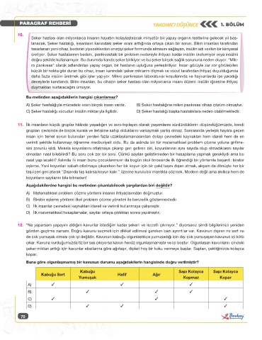 A) Şeker hastalığıyla mücadele eden birçok insan vardır. B) Şeker hastalığına mikro pankreas cihazı çözüm olmuştur.