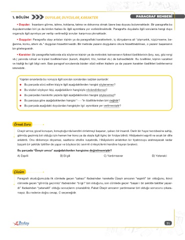 1. BÖLÜM DUYULAR, DUYGULAR, KARAKTER PARAGRAF REHBERİ