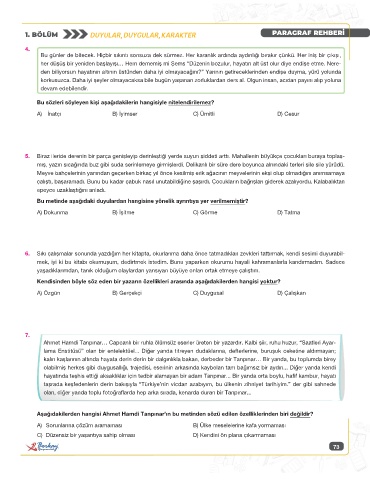 1. BÖLÜM DUYULAR, DUYGULAR, KARAKTER PARAGRAF REHBERİ