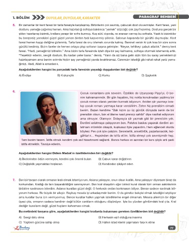 1. BÖLÜM DUYULAR, DUYGULAR, KARAKTER PARAGRAF REHBERİ