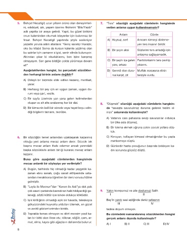 5. Behçet Necatigil; uzun yılların ürünü olan deneyimleri- 7. “Ters” sözcüğü aşağıdaki cümlelerin hangisinde