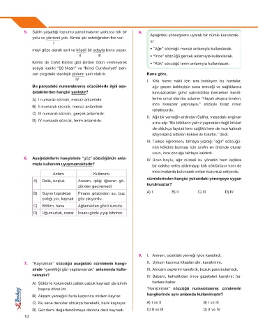 7. “Kaynamak” sözcüğü aşağıdaki cümlelerin hangi- II. Uykum kaçınca kitapları alır, karıştırırım.