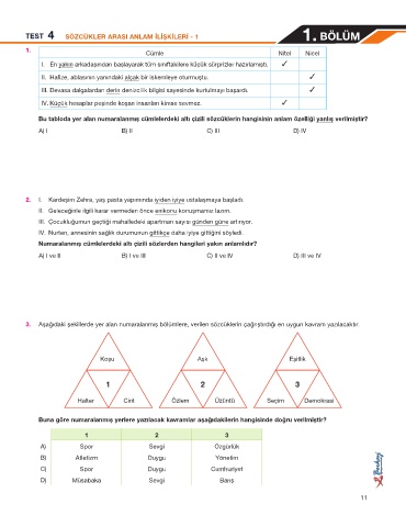 TEST 4 SÖZCÜKLER ARASI ANLAM İLİŞKİLERİ - 1 1. BÖLÜM