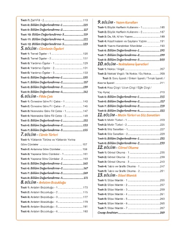 Test-4: Yardımcı Ögeler - 2 .....................................131 Test-1: Nokta / Virgül ...............................................207