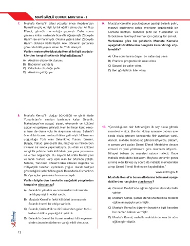 D) Selanik’in önemli bir ticaret merkezi hâline gelme- D) Mustafa Kemal, mahalle mektebinde kısa bir süre