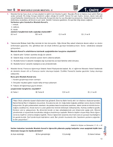 TEST 5 MAVİ GÖZLÜ ÇOCUK: MUSTAFA - II SBINK247 1. ÜNİTE