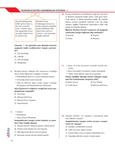 8. Mustafa Kemal’i etkileyen fikir insanlarının anlatıldığı • Genç Osmanlılar Cemiyetinin üyeleri arasındadır.