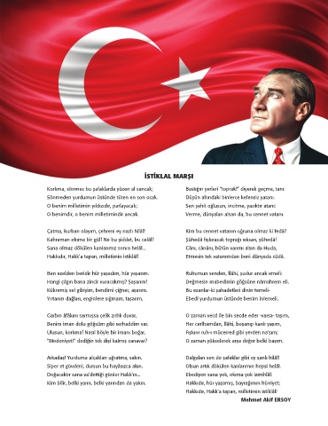 Arkadaş! Yurduma alçakları uğratma, sakın. Dalgalan sen de şafaklar gibi ey şanlı hilâl!