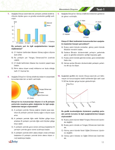 7. Aşağıda Dünya üzerindeki bir yerleşim yerinde belirli ta- 9. Aşağıda Dünya’nın Güneş etrafında dolanımını gösteren
