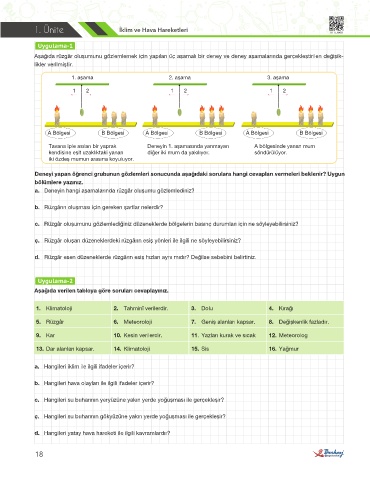 Aşağıda rüzgâr oluşumunu gözlemlemek için yapılan üç aşamalı bir deney ve deney aşamalarında gerçekleştirilen değişik-