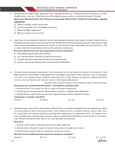 4. Mustafa Kemal’in vatan sevgisi, daha öğrenciyken okuduğu Mehmet Emin Yurdakul’un şiirleri ile zihninde yer etmişti.