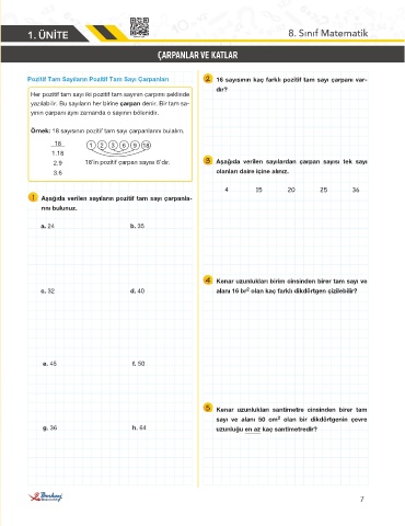 2.9 18’in pozitif çarpan sayısı 6’dır. 3 Aşağıda verilen sayılardan çarpan sayısı tek sayı