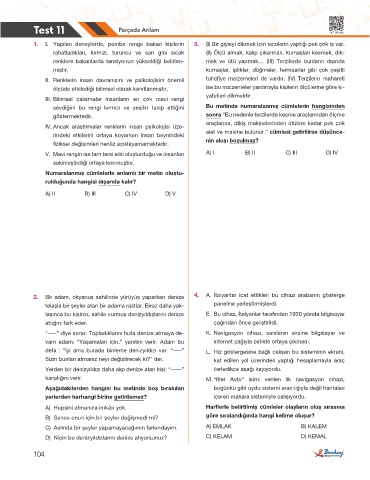 2. Bir adam, okyanus sahilinde yürüyüş yaparken denize 4. A. İtalyanlar icat ettikleri bu cihazı arabanın gösterge