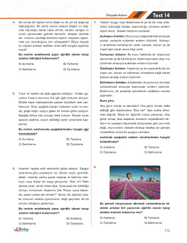 4. Ne roman bir toplum bilim kitabı ne de şiir bir doğrular 7. Yazarın duygu veya düşüncelerini ya da bir olayı anla-
