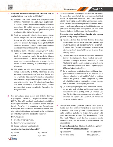 1. Aşağıdaki metinlerden hangisinde kullanılan düşün- 3. Yazdığım yazılarla ilgili okuyucularımdan sık sık dönüt-