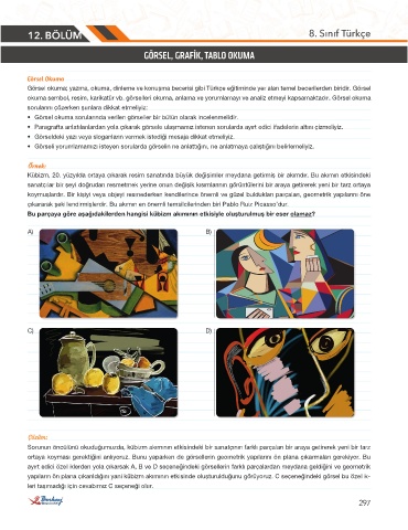 yapıların ön plana çıkarıldığını yani kübizm akımının etkisinde oluşturulduğunu görüyoruz. C seçeneğindeki görsel bu özellik-